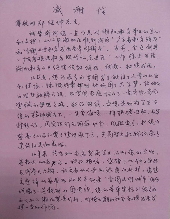 董事长郑继坤先生,一直支持家乡教育事业,为家乡的贫困学生倾注了大量心血和情愫,帮助他们圆大学梦,让他们的理想驰骋天际,为贫困家庭开拓了一条走向梦想的希望之路。近日,汕头市潮阳区教育局、潮阳区教育基金会及潮阳区教育局关工委发来感谢信。
